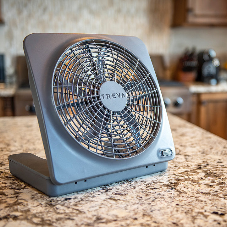 Our TREVA 10" Basic Fan with AC Adapter is a must have. This powerful two-speed fan has a compact, folding design that is portable and easy to store. It’s built-in handle makes it easy to move from space to space. Fan has an adjustable tilt for directional airflow. For use anywhere you need air cooling or circulating: in the home, outdoors or on-the-go! Folds for easy storage.